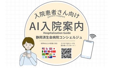 受付時間休診日 ・受付時間 8:00〜11:00 ・休診日 土・日曜日・祝日・年末年始 予約受診の方は、予約時間前に受付をお願いします。 外来担当医表外来担当医・休診情報 救命救急センター受診のご案内 交通アクセス 詳しくはこちら 電車・バスでお越しの方 お車でお越しの方 タクシーでお越しの方 MAP 〒422-8527 静岡県静岡市駿河区小鹿1-1-1大きな地図で見る お知らせInformation PICKUP 病院からのお知らせ イベント 情報公開 病院発行コンテンツ 採用情報 健康管理センター 病院からのお知らせ NEW 2026.04.17 AI入院案内(静岡済生会病院コンシェルジュ)の実証実験スタート 病院からのお知らせ NEW 2026.04.17 院内でのマスク着用について(運用見直しのお知らせ) 採用情報 NEW 2026.04.17 作業療法士(2027年新卒・正規)募集 採用情報 NEW 2026.04.16 臨床検査技師(有期)募集 健康管理センター NEW 2026.04.09 すい癌リスク健診始めました イベント NEW 2026.04.09 がんサロン開催のお知らせ イベント NEW 2026.04.09 就労支援相談会のご案内(毎月第3金曜日開催) 病院からのお知らせ NEW 2026.03.25 2026年4月外来担当医表 病院からのお知らせ NEW 2026.04.17 AI入院案内(静岡済生会病院コンシェルジュ)の実証実験スタート 病院からのお知らせ NEW 2026.04.17 院内でのマスク着用について(運用見直しのお知らせ) 病院からのお知らせ NEW 2026.03.25 2026年4月外来担当医表 病院からのお知らせ 2026.03.17 当院に「チョイソコしずおか」の停留所が設置されます 病院からのお知らせ 2026.03.17 児童虐待と地域連携を考える ~SUPPORTカフェ第26回講演会を開催しました~ 病院からのお知らせ 2026.03.17 4月1日「脳卒中相談窓口」を開設します 病院からのお知らせ 2026.02.24 地域の保育従事者向け講習会で当院看護師が講演 病院からのお知らせ 2026.02.24 WEBメディア「シンク!」にて「インクルーシブ防災」についての記事が掲載されました 病院からのお知らせ 2026.02.20 WEBメディア「シンク!」にて寿地区無料健診の記事が掲載されました 病院からのお知らせ 2026.01.09 【重要】2026年1月1日より有料室の金額が変わりました。 病院からのお知らせ 2026.01.08 【お知らせ】小児科外来に新しい遊びスペース「どうぶつたちの集まる木かげ」がオープンしました 病院からのお知らせ 2026.01.05 WEBメディア「シンク!」にてひまわり事業団の記事が掲載されました イベント NEW 2026.04.09 がんサロン開催のお知らせ イベント NEW 2026.04.09 就労支援相談会のご案内(毎月第3金曜日開催) イベント 2026.01.19 クリスマスコンサート2025開催しました イベント 2026.01.14 外来でロビーコンサートを開催しました イベント 2025.12.12 第16回SCCしずおかコピー大賞・地域医療賞 決定のご報告 イベント 2025.12.10 ロビーコンサートのご案内 イベント 2025.12.04 \済生会フェア開催決定/ イベント 2025.12.04 クリスマスコンサートに新たな出展者決定! イベント 2025.12.04 クリスマスコンサート2025のお知らせ イベント 2025.10.22 リレー・フォー・ライフ・ジャパン2025静岡に参加します イベント 2025.10.21 「それいゆさにぃの不思議な仲間たち展」開催のお知らせ イベント 2025.10.09 【イベントレポート】世界アルツハイマーデーイベント 病院発行コンテンツ NEW 2026.03.23 home vol.54:それ、脳卒中の前触れかも?発症する前に知っておきたいこと 病院発行コンテンツ NEW 2026.03.23 home vol.54:命を守るために 覚えよう「FAST」 病院発行コンテンツ NEW 2026.03.23 home vol.54:脳卒中の患者さんを支える看護 病院発行コンテンツ NEW 2026.03.23 home vol.54:DOCTOR'S VOICE 「患者さんの精神面もサポートしていきます」 病院発行コンテンツ NEW 2026.03.23 home vol.54:NURSE’S VOICE 「患者さんが良くなっていく喜びを皆で共有したい」 病院発行コンテンツ 2026.03.10 メディカルコラム掲載のお知らせ 病院発行コンテンツ 2026.03.03 Home vol.55を公開しました。 病院発行コンテンツ 2026.01.13 Home vol.54を公開しました。 病院発行コンテンツ 2025.11.20 home vol.53:DOCTOR'S VOICE 「不調の原因を突き止めることにやりがいを感じています」 病院発行コンテンツ 2025.11.20 home vol.53:【貧血予防実践編】栄養バランスお助け術 病院発行コンテンツ 2025.11.20 home vol.53:【貧血予防基本編】食事管理の基本 病院発行コンテンツ 2025.11.20 home vol.53:これって貧血? 採用情報 NEW 2026.04.17 作業療法士(2027年新卒・正規)募集 採用情報 NEW 2026.04.16 臨床検査技師(有期)募集 採用情報 2026.03.12 調理師(有期)募集 採用情報 2026.02.20 薬剤師(2027年新卒・正規)募集 採用情報 2026.02.16 作業療法士春休みちょこっとインターンシップ開催 採用情報 2026.01.27 看護学生1年生対象 職業体験会 を開催します! 採用情報 2026.01.20 職員限定イベント開催報告「カカオ豆からつくるチョコレートのワークショップ」 採用情報 2026.01.14 職員・家族向けリフレッシュイベント開催報告 「職場deプラモ遊び」 採用情報 2026.01.05 看護インターンシップ開催のお知らせ 2026春 採用情報 2025.12.26 職員向け子育て支援イベント「はぐくみCafé」を開催 採用情報 2025.10.20 転職者向け作業療法士 病院見学を実施して